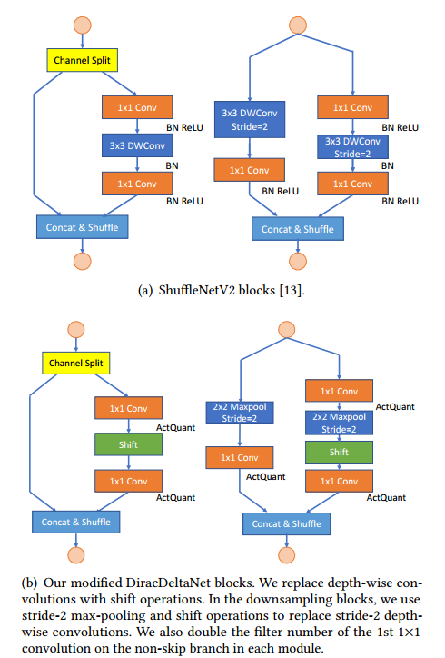 作者对shuffleNetV2网络结构进行了更有利于FPGA部署的微调。有以下三个方面: