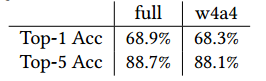 为了进一步降低网络参数量,作者采用了DoReFa-Net网络的量化方式,对全精度权重进行了量化。同时作者还对activation进行了量化。量化结果如下: