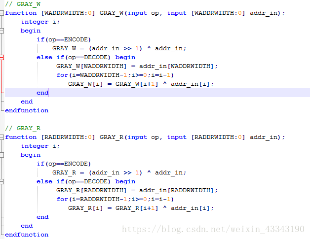 代码使用的是函数的形式,方便调用,op表示编码或者译码,WADDRWIDTH和RADDRWIDTH表示位宽。
