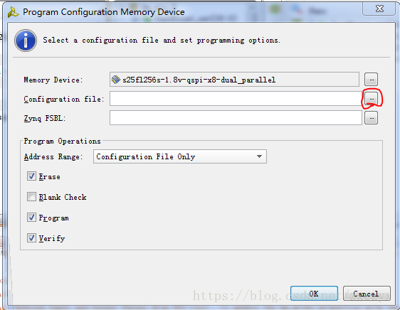 在configuration file 中选中已经固化在FPGA中的mcs文件