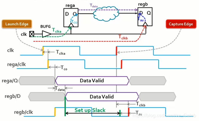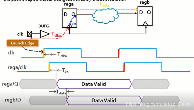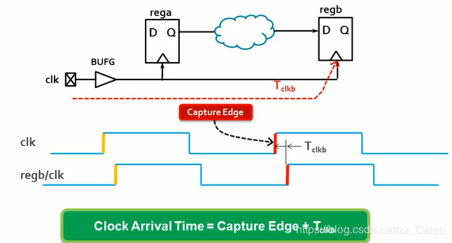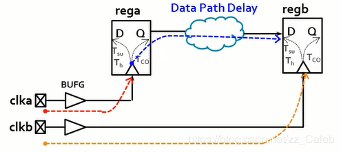 - 数据在发送沿发送之后,经过多长时间会到达接收寄存器的数据端口,即到达regb的D端口的时刻,这个时刻就是数据到达时间。