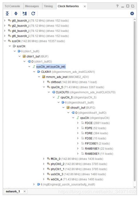 以vivado自带的例子wavegen为例。点击Synthesis的Report CLock Networks如下图所示: