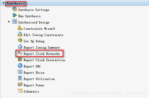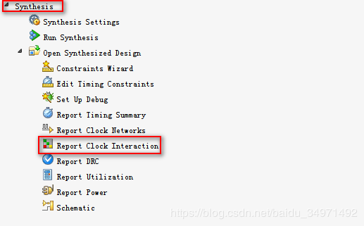 如下图所示,点击Synthesis–>Report Clock Interaction.