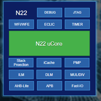 芯来还为台湾晶心科技开发了基于N200系列架构的N22处理器,该处理器支持晶心自己的RISC-V V5/V5e延伸指令集,并达到了3.93 CoreMark/MHz的处理器性能,频率高达800MHz。