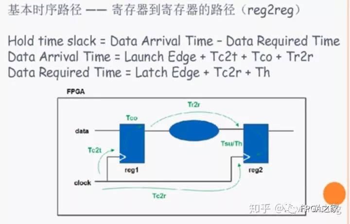 数据时间需求:锁存时钟+时钟到reg2的延时-setup时间