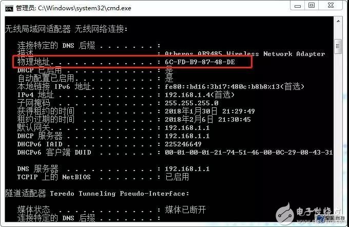 这6个字节,代表着源MAC地址。我们也可以通过查看自己电脑上的MAC地址来确认。