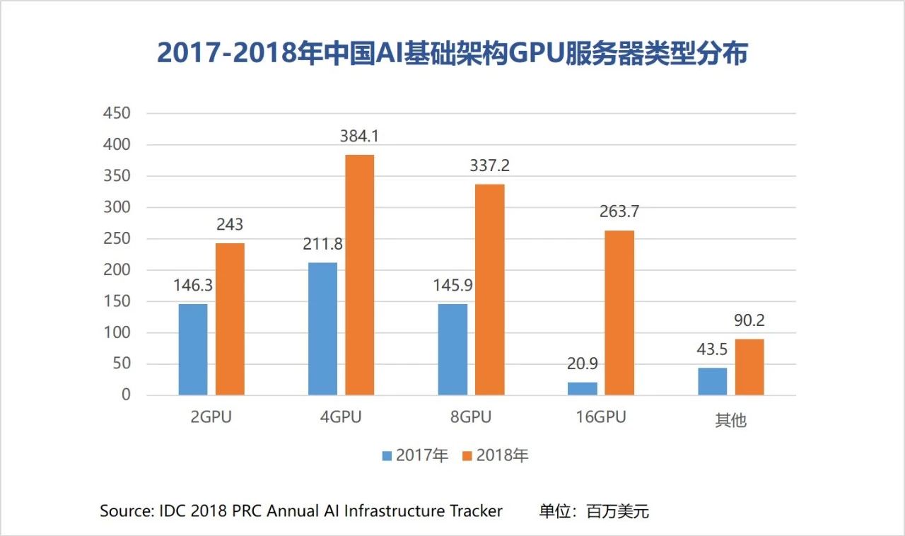AI基础架构市场调查报告》,2018年中国AI基础架构市场销售额同比增幅高达132%,整体销售额达到13.18亿美元。