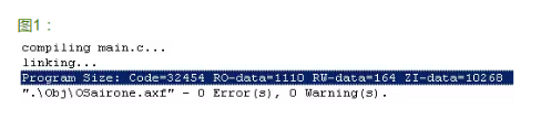 首先单片机的内存可以大小分为ram和rom,这里就不再解释ram和rom的区别了,我们可以将其等效为flash和sram,其中根据flash和sram的定义可得,flash里面的数据掉电可保存,sram中的并不可以,但是sram的执行速度要快于flash,可以将单片机的程序分为code(代码存储区)、RO-data(只读数据存储区)、RW-data(读写数据存储区)和ZI-data(零初始化数据区)。在MDK编译器下可以观察到在代码中这4个量的值,如下图1所示: