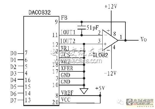 图6 DAC0832 的连接电路