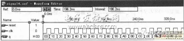 按图3 画出顶层原理图,然后进行编译,波形仿真如图4所示。