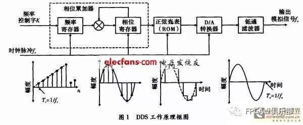 文中提出一种基于FPGA的DDS信号发生器。信号发生电路采用直接数字频率合成技术,即DDS(Direct Digital Frequency Synth-esis)。它是以全数字技术,从相位概念出发,直接合成所需波形的一种新的频率合成技术。是将先进的数字处理技术和方法引入信号合成领域,把一系列数字量形式的信号通过数/模转换器转换成模拟信号,在时域中进行频率合成。直接数字频率合成器的主要优点是:输出信号频率相对带宽较宽;频率分辨力好、转换时间快;频率变化时相位保持连续;集成度高,体积小,控制方便等。整个信号源系统采用数字闭环控制,通过对励磁电流瞬时值经PID闭环控制,使得励磁电流可瞬时跟踪给定幅值,加快系统动态响应,提高非线性负载适应力,其较传统的信号源能更好地满足磁性测试设备的需求。