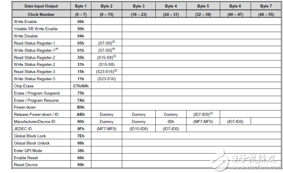 我们的设计用的是W25Q128FV 内存128M的flash芯片,大家可以自行在网上下载器件手册具体看所应用的具体命令和自己项目具体的应用和想发来设计。