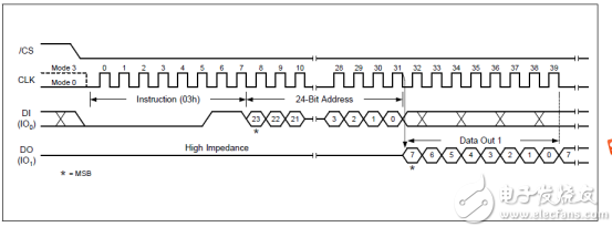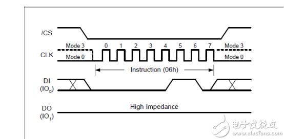 我们的发送格式为在时钟的上升沿写入命令,在时钟的下降沿读出命令,我们用的是标准的SPI协议,端口IO0,和IO1,都是单向的。