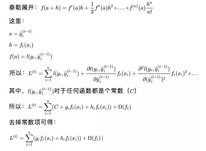 虽然上面只展开到二阶导数,但这种近似程度就足够了。对于任意ft(xi),第一项C都是常数。gi是前一次迭代中损失的一阶导数,hi是其二阶导数。韩梅梅可以在探索其他基学习器前直接计算gi和hi,这就成了一个简单的乘法问题,计算负担大大减轻了,不是吗?