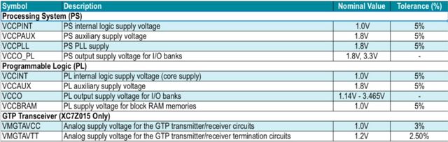 表2 Zynq 7000系列片上系统 (SoC) 的电源要求