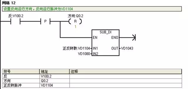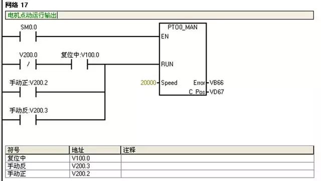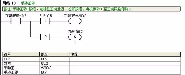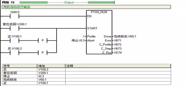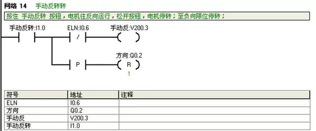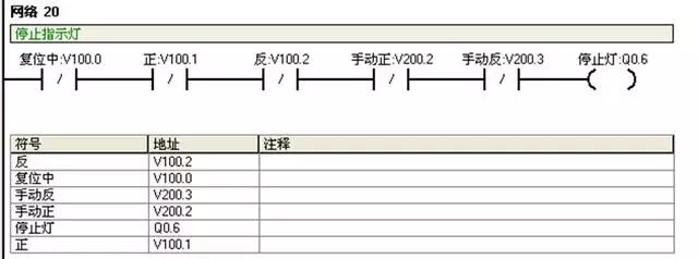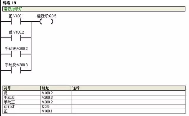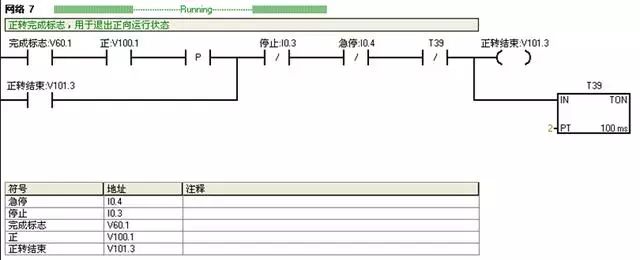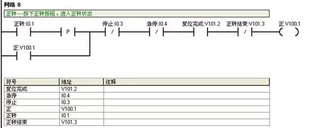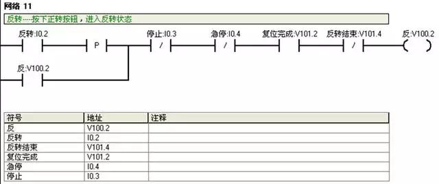 I0.2:反转按钮;V100.2:反转运行状态;V101.2:复位完成标志。正反转自动运行前必须复位完成;