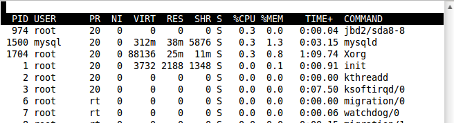 (译注:不同发行版的top命令在各种细节有不同,如果发现不同时,请读你的帮助手册和命令内的帮助。)