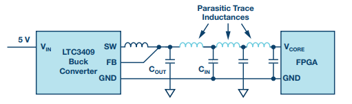 图7. 电源输出电容与FPGA输入电容之间的寄生去耦。
