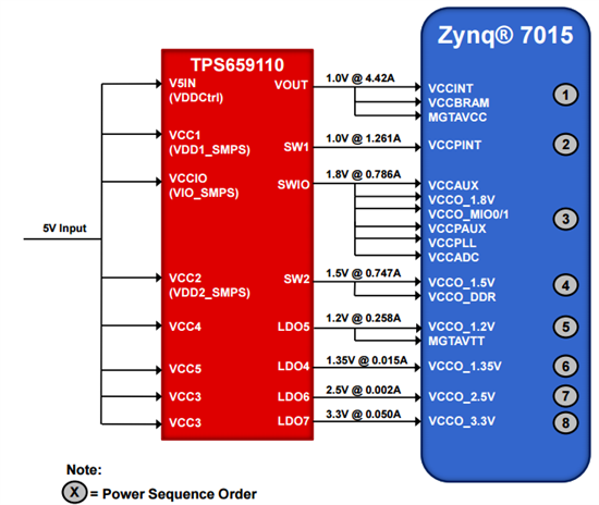 TIDA-00551使用TPS65911 为Xilinx Zynq 7015供电。