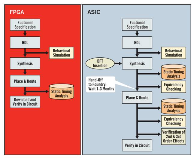 插一句,在ASIC设计过程中,往往要用到FPGA进行原型验证。FPGA验证是进行ASIC设计的重要环节,其后,还需要引入ASIC版本源码,插入IOPAD,DFT,功耗估计和进行其它后端流程。完成FPGA验证可以说就完成了ASIC整套流程的50~80%。