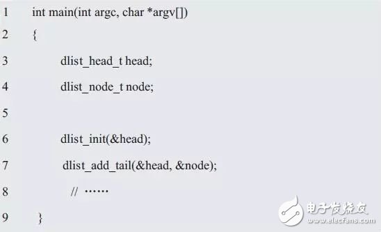 同样以int类型数据为例,来展示这些接口的使用方法。为了使用链表,首先应该定义一个结构体,将链表结点作为其一个成员,此外,再添加一些应用相关的数据,如定义如下包含链表结点和int型数据的结构体: