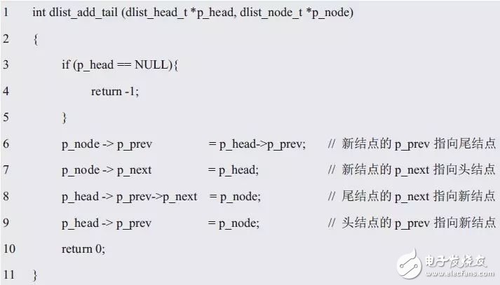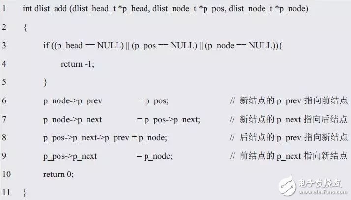 此时,头结点即为新添加结点的前结点,直接调用dlist_add()即可实现,其实现范例详见程序清单3.43。