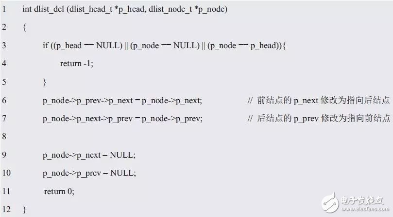 其中,p_head为指向链表头结点的指针, p_node为指向待删除结点的指针,使用范例详见程序清单3.44。