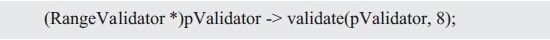 虽然pValidator与&rangeValidator.validate的类型不一样,但它们的值相等,因此可以利用这一特性获取validateRange()函数的地址。即: