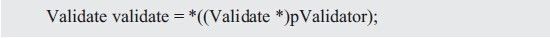 以上调用形式的前提是已知pValidator指向了确定的结构体类型,如果pValidator将指向未知的校验器,显然以上调用形式无法做到通用,那么如何调用?