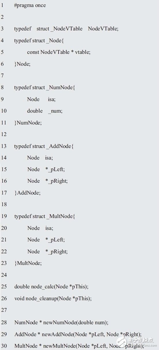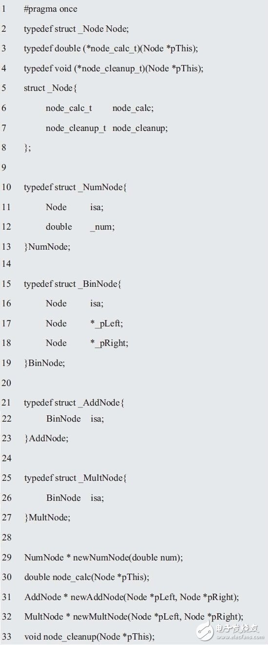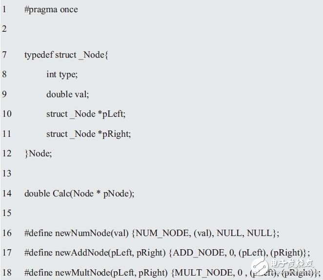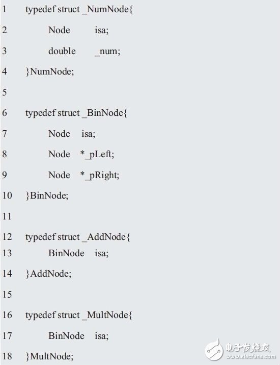 传统的做法是定义一个struct _Node,包含二元运算符和数字结点,详见程序清单 4.12。