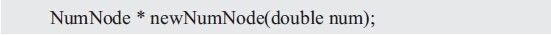 实现表达式算术树的第一步是输入数据和初始化NumNode结构体的变量isa和_num,newNumNode()函数原型如下: