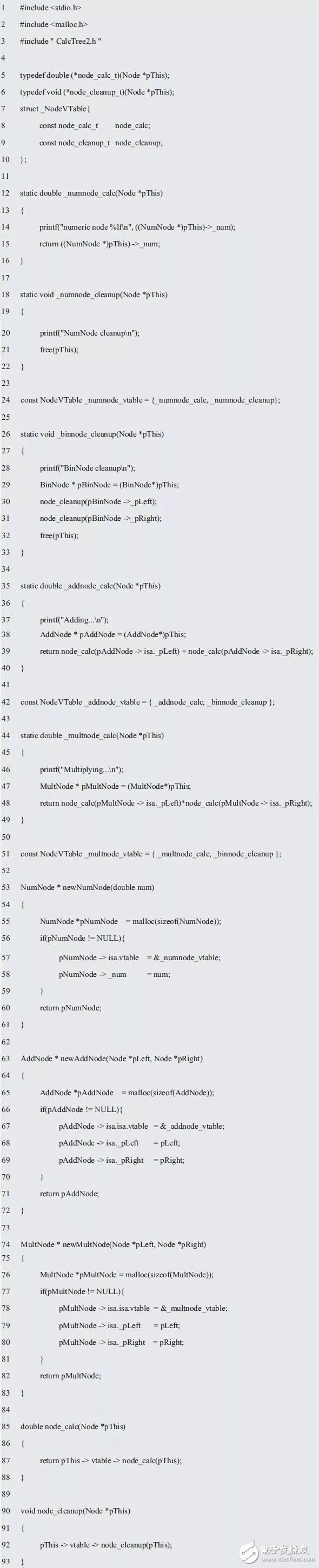 显然,为每个结点创建了相应的类后,就可以为每个结点创建一个动态变量,即可在运行时根据需要使用malloc()分配内存并使用指针存储该地址,并使用指针初始化结构体的各个成员,CalcTree1.c接口的实现详见程序清单 4.16。