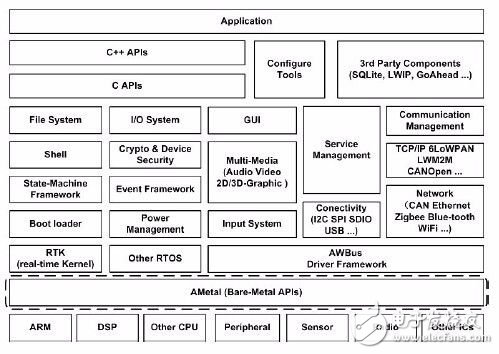 在开发同一系列高中低三个层次的产品时,通常会遇到这样的问题,主芯片可能使用ARM9、双核A9 和DSP,其操作系统分别为μC/OS-II、Linux 和SysBIOS。不仅驱动代码不兼容,而且应用层代码也不一样,显然浪费在这上面的开销是不可想象的。