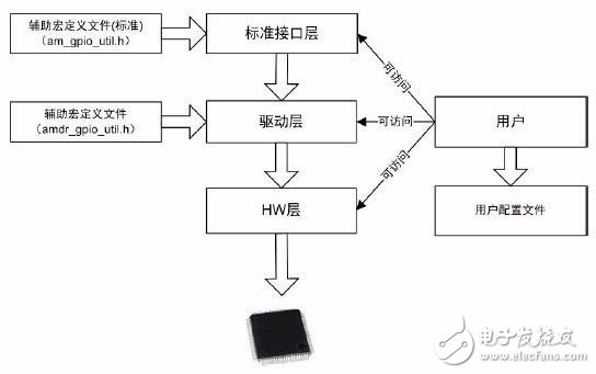 标准接口层对常见外设的操作进行了抽象,提出了一套标准API 接口,可以保证在不同的硬件上,标准API 的行为都是一样的。用户使用一个GPIO 的过程:先调用驱动初始化函数,后续在编写应用程序时仅需直接调用标准接口函数即可。可见,应用程序基于标准API 实现的,标准API 与硬件平台无关,使得应用程序可以轻松的在不同的硬件平台上运行。