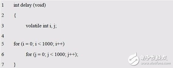 LED 闪烁就是让LED 不停的亮灭,因为计算机指令的执行速度非常快,其执行时间是微秒级的,所以在微秒之间点亮和熄灭LED,眼睛是看不到闪烁现象的。如果想让人眼看到LED 闪烁,就必须将LED 点亮和熄灭的停顿时间扩大近秒级别。如何实现停顿呢?点亮LED 后,先不要熄灭LED,而是先延时一会儿,让“点亮LED 后,再保持一段时间”,然后再熄灭LED。在实验之前,我们需要延时函数,它在C 语言中是怎么实现呢?很简单,就是让MCU 执行一些没有任何实际意义的空循环指令,进而等效于延时。延时范例程序详见程序清单4.3,该程序中,MCU 大约就要执行1000000 条空指令。