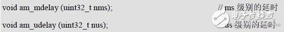 这样的延时函数好用吗?由于MCU 运行速率不同,因而导致实际的延时结果不同。如果要求不同的延时时间,则又需要不同的延时函数。显然,该延时函数不仅通用性太差,而且延时时间也不精确。幸运的是,AMetal 提供了使用定时器实现的高精度标准延时函数,主要包含了2 个延时函数,其函数原型(am_delay.h)如下: