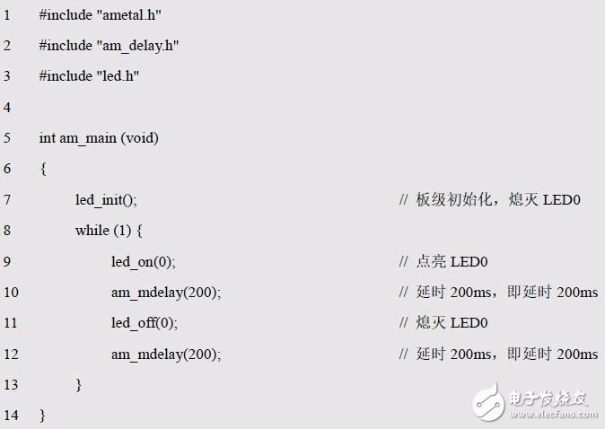 程序清单4.5 单个LED 闪烁范例程序(2)