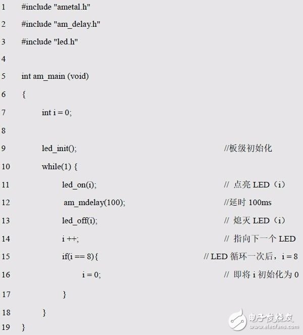 程序清单4.4 单个LED 闪烁范例程序(1)