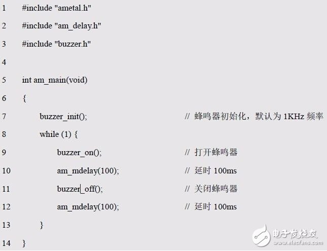 buzzer_init()会将发声频率设置为默认值:1KHz。如需修改发声频率为其它值,如:2.5KHz,则应调用发声频率设置函数,即“buzzer_freq_set(2500);”,详见程序清单4.9。