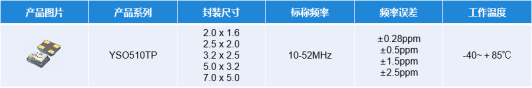 YSO510TP:在-40~85℃的温度范围内,稳定性可达±2.5PPM,具备多种尺寸。