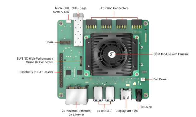 Kria KR260机器人入门套件包括载卡、Kria K26 SOM和散热解决方案。