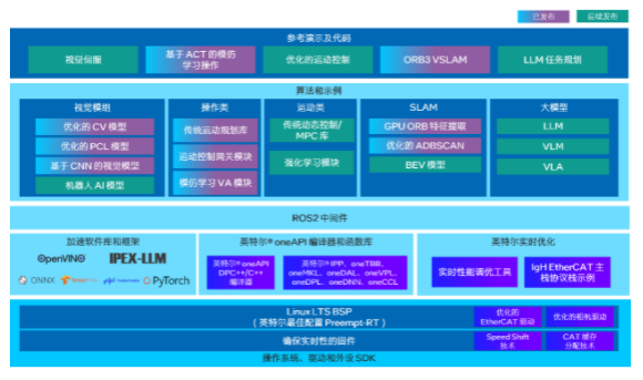 英特尔发布的具身智能方案以大小脑融合为亮点,能够使感知、交互、任务规划和运动控制在统一的系统中实现高效整合。而作为其中的算力中枢,英特尔® 酷睿™ Ultra处理器通过CPU 、集成的英特尔锐炫™ GPU 与 NPU 协同运行,以高性能异构算力和高精度实时性能,支持具身智能的多样化负载稳定运行,同时也大幅提升具身智能系统的整体效率和响应能力。