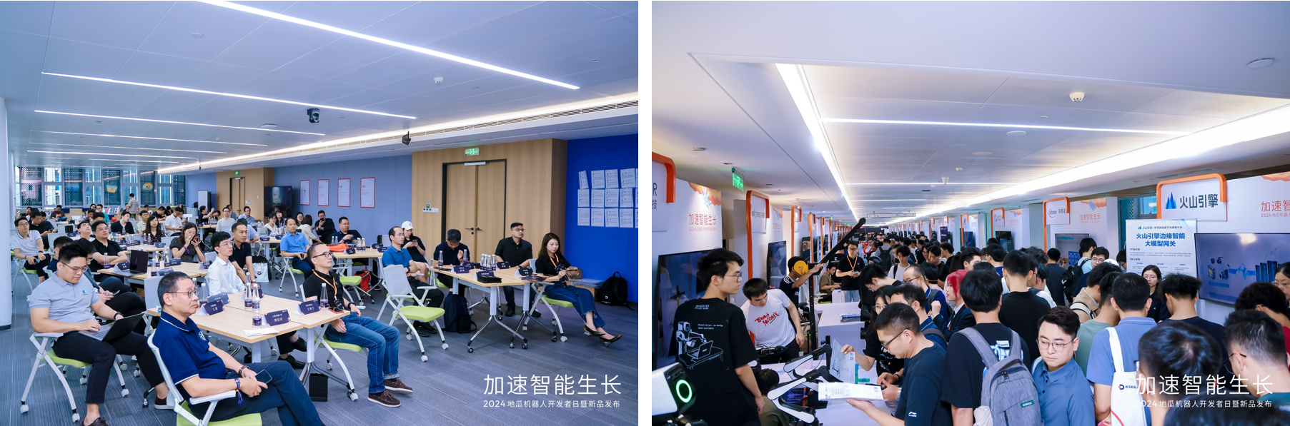 本次开发者日汇聚了近400名机器人开发者的热情参与,并举办了RDK X5开发工作坊、开发者TalkShow、DUP教育生态联盟研讨会、具身智能前沿论坛以及极客夜话等多场平行活动。一场场充实的上手开发实践、创新成果汇报、创业干货分享和前沿趋势探讨,让每一位开发者收获满满,更好地了解机器人创新、创业所需的一切。活动现场,更有基于地瓜机器人生态的各式机器人产品展出,一应俱全的产品形态和新奇功能,展现了机器人+时代的繁花似锦和无限可能。