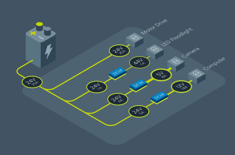 高强度的计算、通信和传感为 ASR 的供电网络带来沉重负担。它们必须紧凑、高效。ASR 没有气流或通风功能,因此 Knightscope 开始寻找一种可使用铝皮作为散热片的单纯传导散热解决方案。该公司采用了 Vicor DC-DC 转换器模块 (DCM3623),因为其独特的 ChiP™ 封装不仅散热良好,而且外形极为小巧。此外,该 DCM 的功率密度还为布线和线缆组合提供了帮助,并提高了电池效率和性能,延长了运行时间。