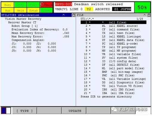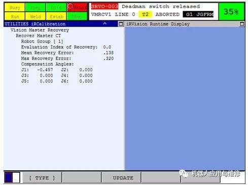 在相机等相关硬件都已合适安装完成的情况下,以下将以在M-10iA机器上更换J1轴为例对具体操作过程和步骤及结果分析做详细叙述。