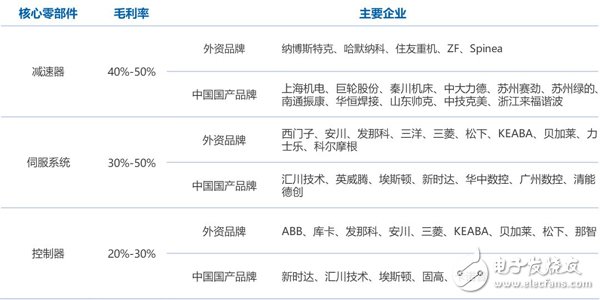工业机器人三大核心零部件毛利率及知名厂商