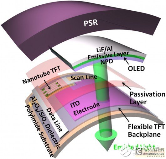 皮肤的生产相对简单,在硅芯片上沉积一层薄薄的聚合物,然后使用标准的半导体制造技术再叠上一层晶体管、一个有机LED、一个压力传感器。最后快完工的时候剥掉硅衬底上的一层塑料,留下干净的胶片,里面内置了传感器网络。