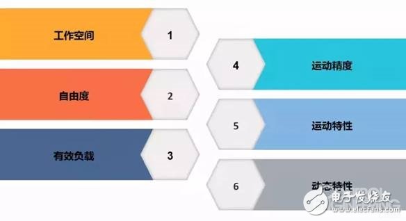 表示机器人特性的基本参数和性能指标主要有工作空间、自由度、有效负载、运动精度、运动特性、动态特性等。
