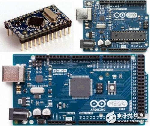 为了方便大家编写单片机的程序,我们采用的是完全开源的Arduino系列单片机。Arduino由一个欧洲开发团队于2005年冬季为艺术生开发,所以比较简单,容易上手。Arduino由硬件(各种型号的Arduino板)和软件(Arduino IDE)组成。下图为常用的几款Arduino。
