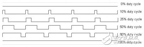 PWM信号是数字方波,其中频率是恒定的,但信号接通时间的一小部分(占空比)可以在0和100%之间变化。